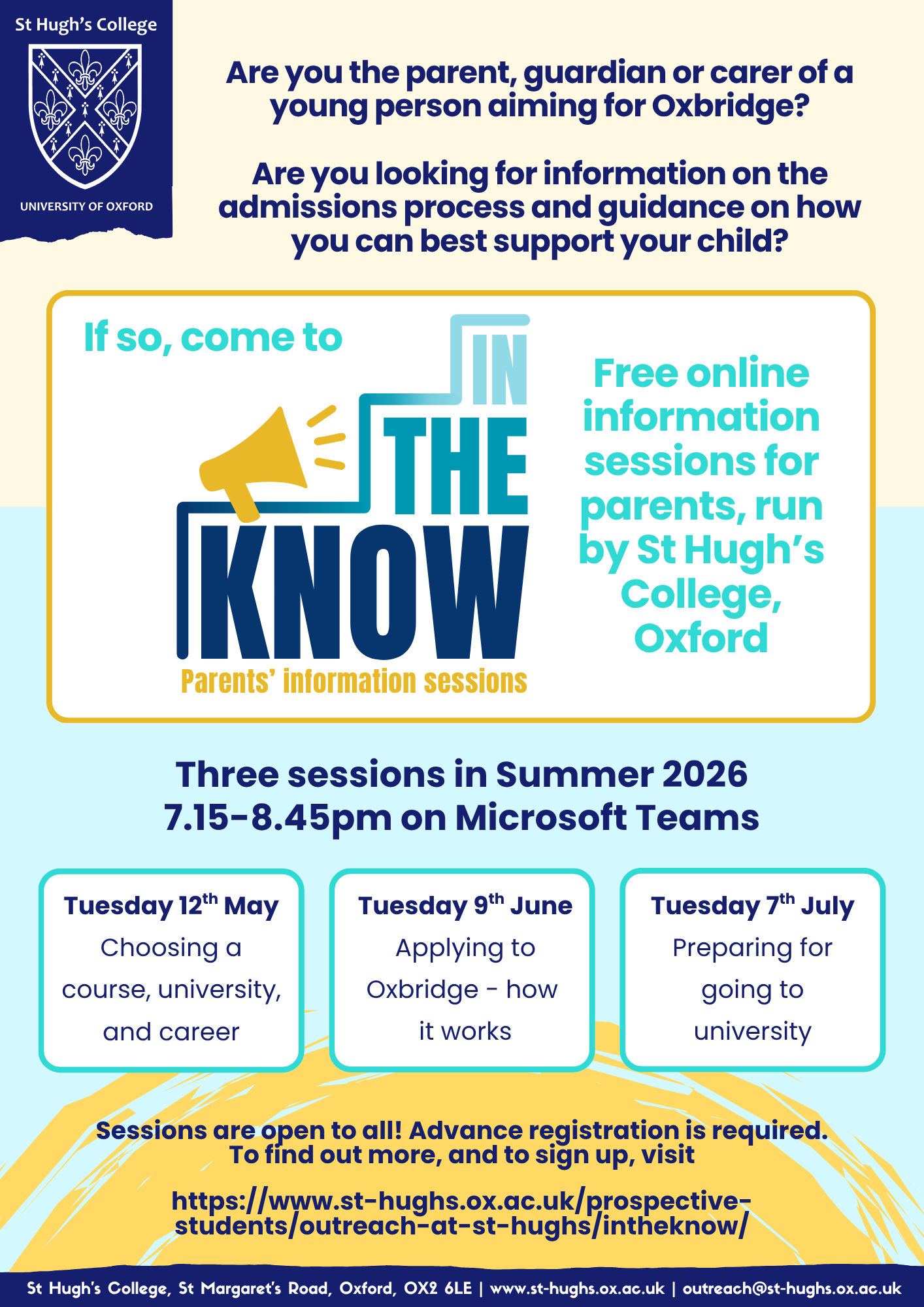 Is your child or young person you are caring for thinking about applying to Oxbridge? If so, this session is for you.