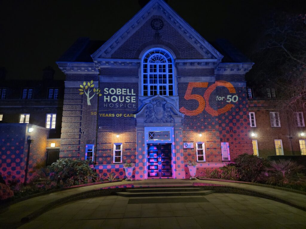 We were delighted to be able to show our support for Sobell House Hospice by celebrating their 50th anniversary of care by illuminating the front of College with a spectacular light projection. Sobell House Hospice opened its first hospice in the UK in May 1976 and now cares for over 4,500 people a year. The charity provides over £3 million a year to help fund this vital service.