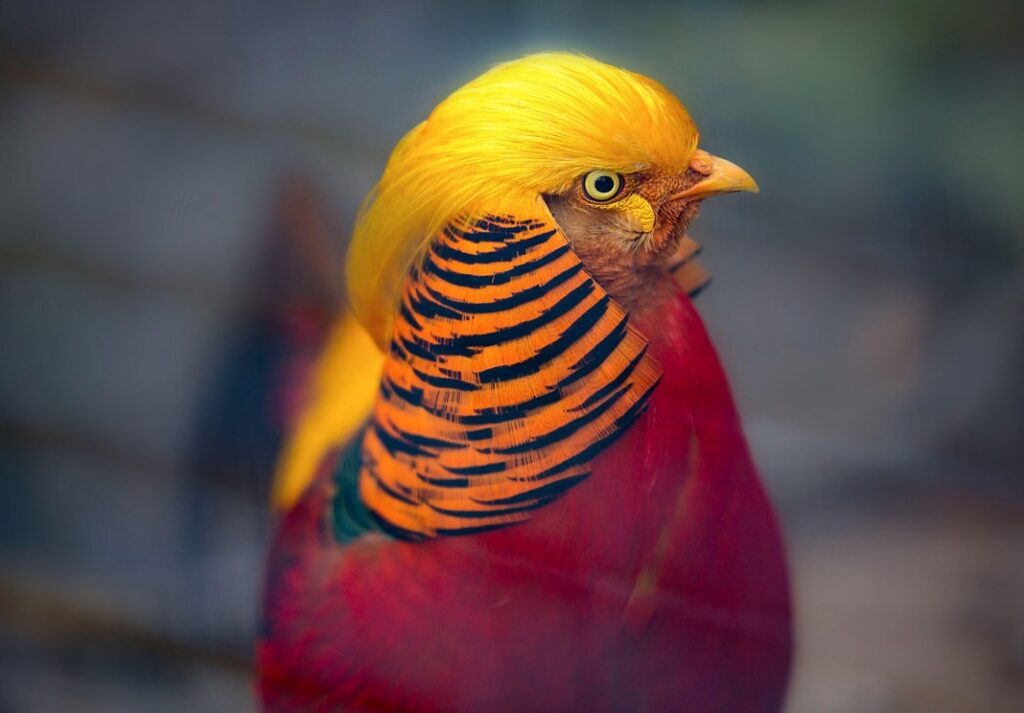 Like many male birds, golden and Lady Amherst’s pheasants (Chrysolophus pictus and C. amherstiae) go to great visual lengths to woo a female. Instead of the vibrant tails of peacocks or the bright orange crests of Andean cock-of-the-rocks, the pheasants sport feathers that create a “toupee” on their head and a “cape” that wraps around their necks. While their fantastic plumage assists in attracting females, Professor Portugal’s paper reports that the feathers on the heads of these male golden pheasants decreases their field of vision. It is the first evidence of a bird where sexes see the world differently.