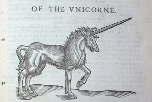 The incredible text pictured below is what is known as a bestiary, or a compendium of “animals.” Originating in the ancient world, this type of work grew in popularity in the Middle Ages. A bestiary consists of short descriptions of animal life, both real and fantastical. Though they share a similar likeness to modern encyclopedias, bestiaries differed in that they were never meant to be read through a scientific lens but rather of a moral and religious one (J. Paul Getty, circa 2019). To writers and readers alike, each animal was viewed as part of God’s divine plan through evidence of their mere existence. Published in 1607, The historie of fourefooted beastes was no different. It was written by Edward Topsell, a Church of England clergyman, for the purpose of informing, entertaining, and more importantly showcasing the idea that the natural world was created by heavenly intervention (Isaac, 2018). The text was more than just an informational piece, it was a spiritual guide to live by as each animal was paired with lessons and quotes from scripture. The unicorn seen here for example was recognized as a pure beast symbolic of Christ with its capture and death a metaphor for Christ’s crucifixion (J.Paul Getty Museum, circa 2019).